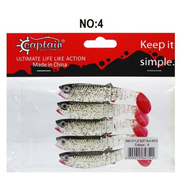 طعمه ماهیگیری ماهی ژله ای ۸ سانتی متر،بسته 5 عددی،کاپیتان مدل 3569 کد۴
