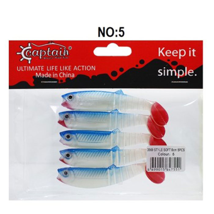 طعمه ماهیگیری ماهی ژله ای ۸ سانتی متر،بسته 5 عددی،کاپیتان مدل 3569 کد۵